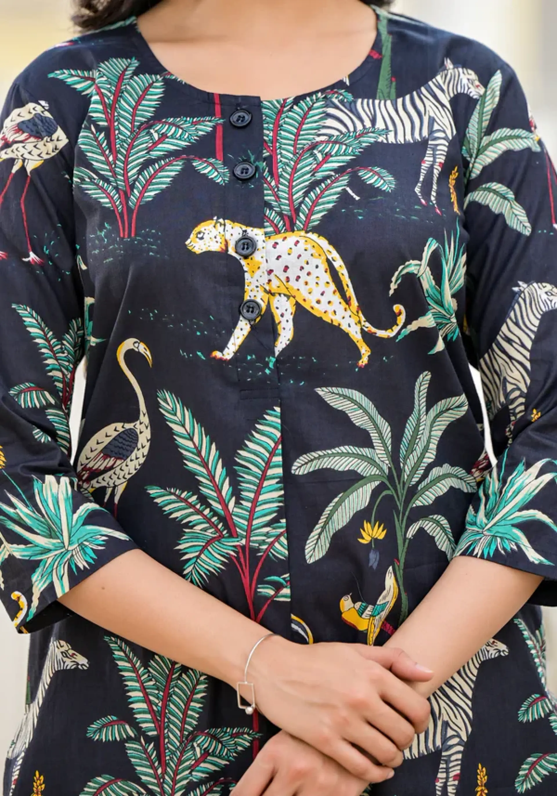 Experience the luxurious comfort of our Midnight Jungle Cord Set. Made with breathable materials, this fashionable set will keep you feeling cool and stylish all day long. Embrace the elegance and exclusivity of this set, perfect for any occasion.