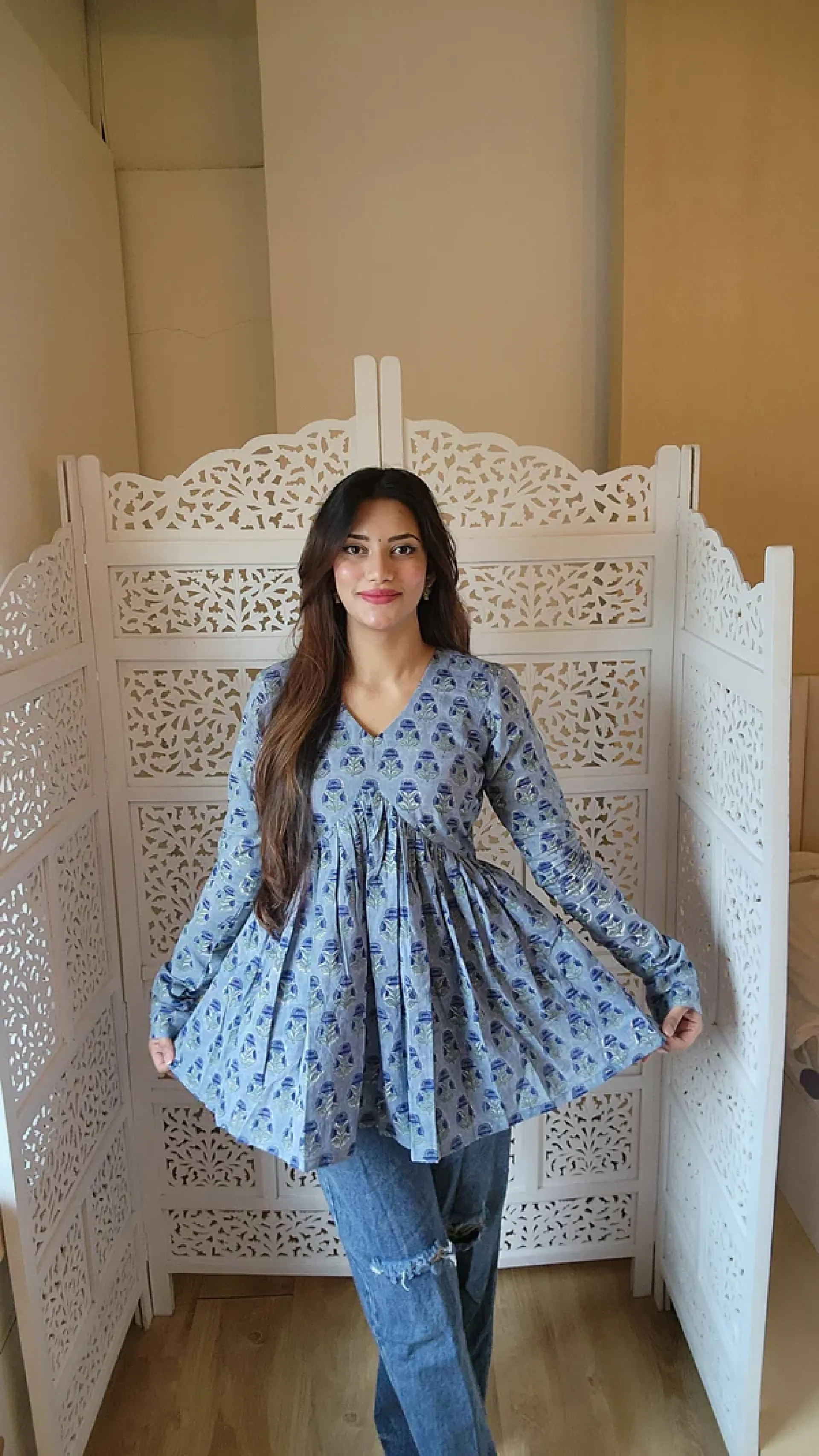 Take on new adventures with our Rosso Blue Handblock Printed Short Kurta! Made with vibrant handblock prints, this kurta exudes boldness and a spirit of risk-taking. Perfect for those who seek new challenges and love to stand out. Take a chance with this daring and stylish piece!