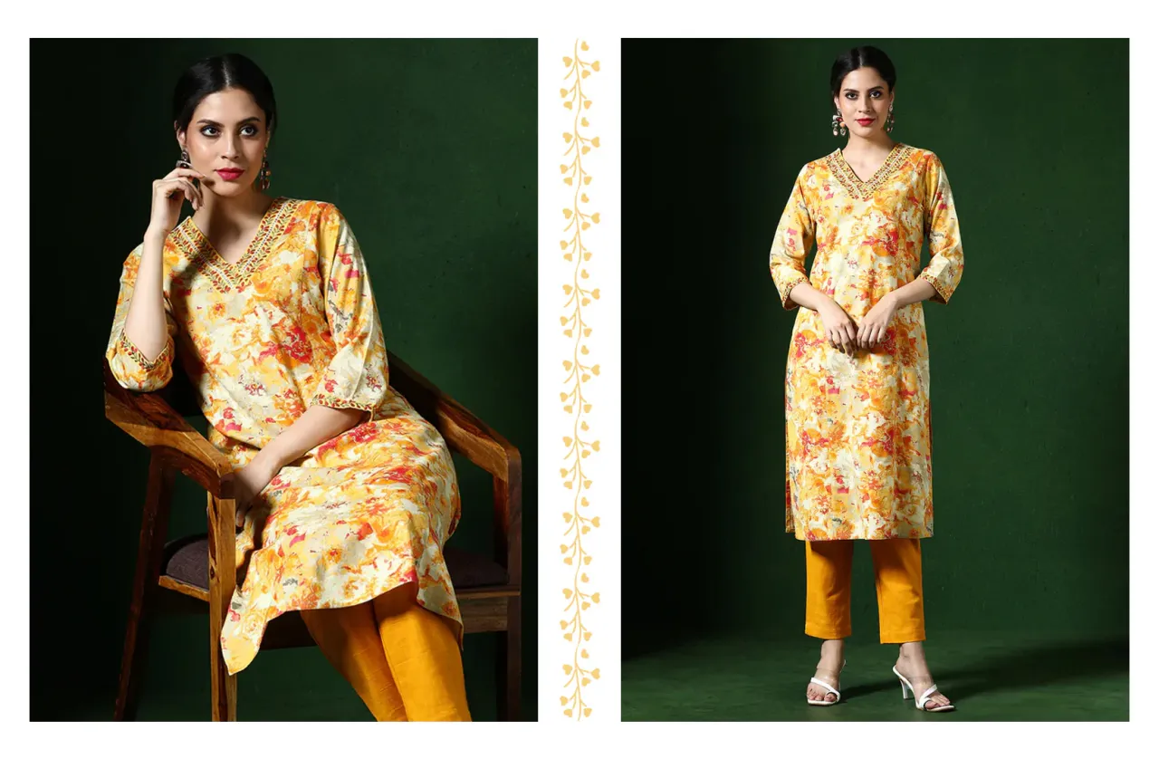Need a pop of sunshine in your wardrobe? This yellow A-line kurta is your go-to. The flattering cut and floral details make it ideal for presentations, events, or just a feel-good Friday. Style with white leggings or palazzos and minimal accessories.