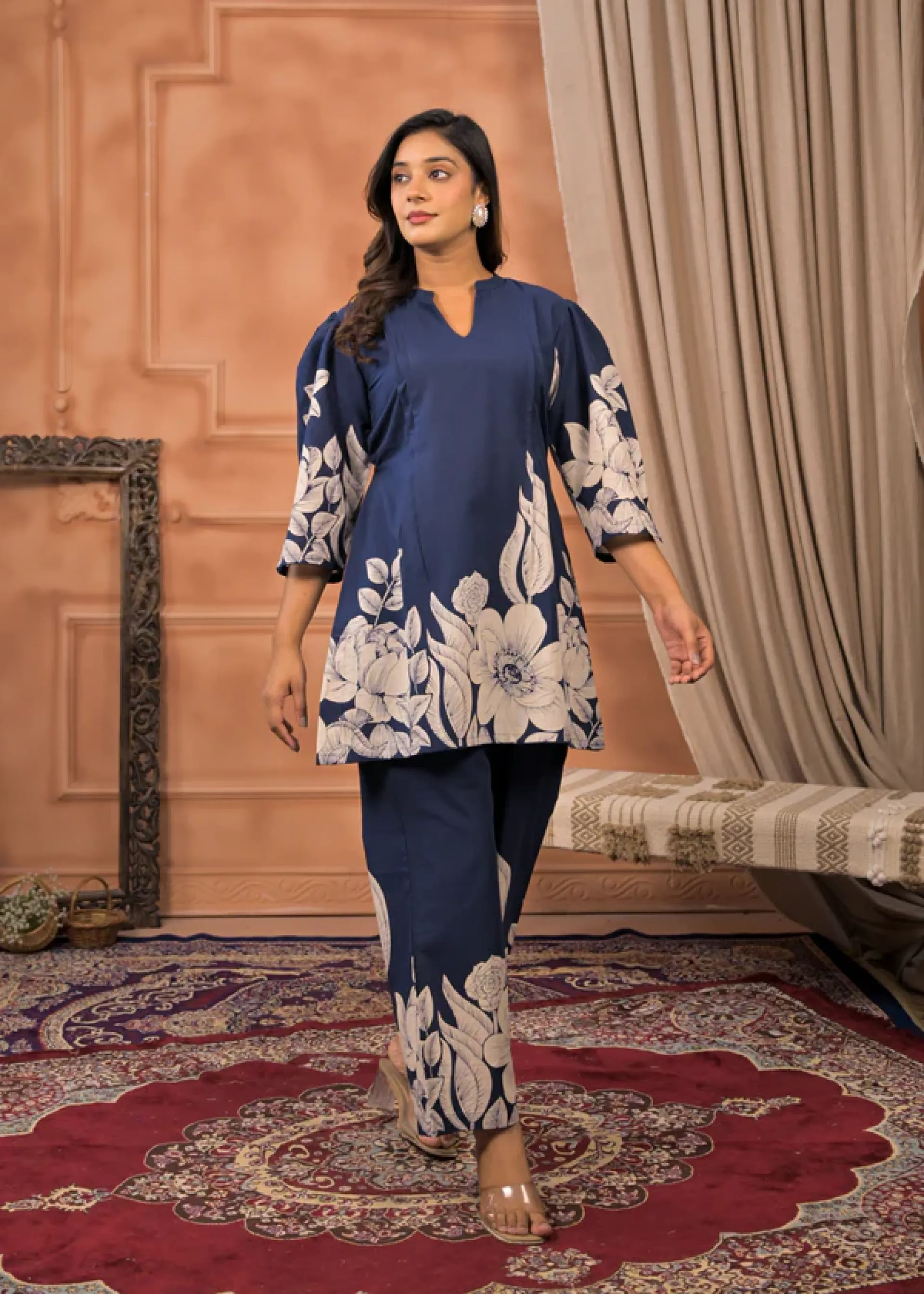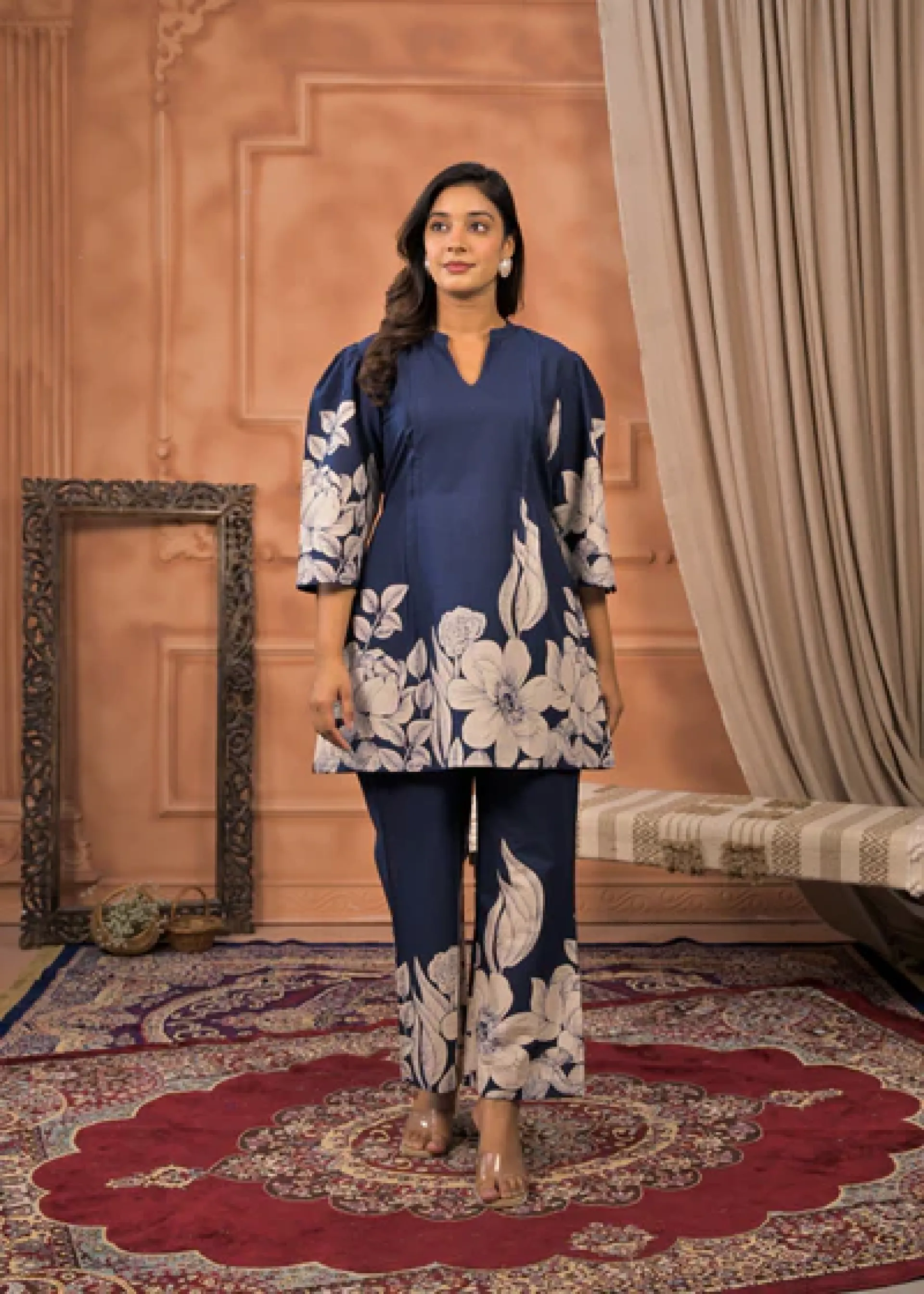Elevate your wardrobe with the Bold in Botanics Indigo Co-ord Set, a refined ensemble that blends timeless indigo hues with botanical-inspired design. Crafted for those who appreciate understated elegance, this set offers a harmonious balance of style and comfort, perfect for sophisticated occasions or polished everyday wear. Its coordinated pieces ensure effortless chic, making it a versatile addition to your collection.