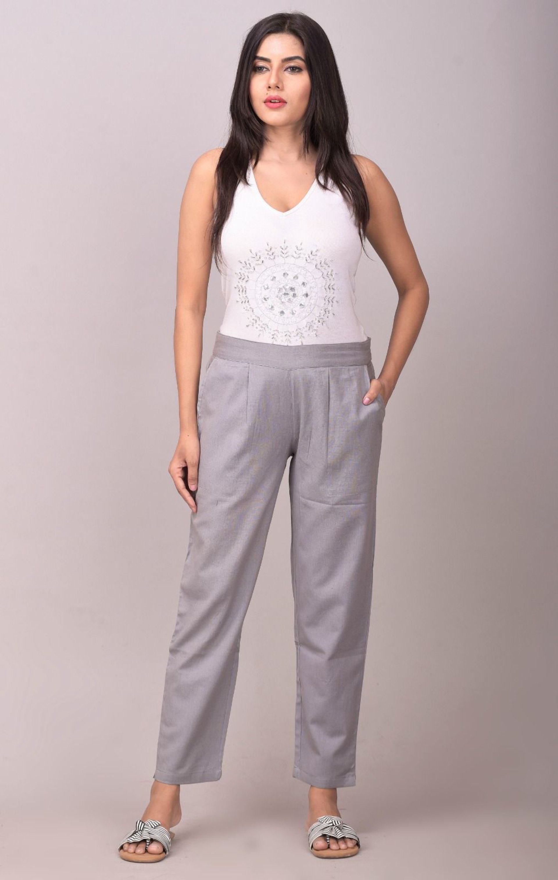 These elegant grey cotton straight pants are a wardrobe essential for women who love comfort with style. The neutral tone makes them easy to pair with vibrant kurtas, pastel tops, or festive tunics. Crafted in breathable cotton fabric, these trousers ensure all-day comfort while keeping your look polished and smart.