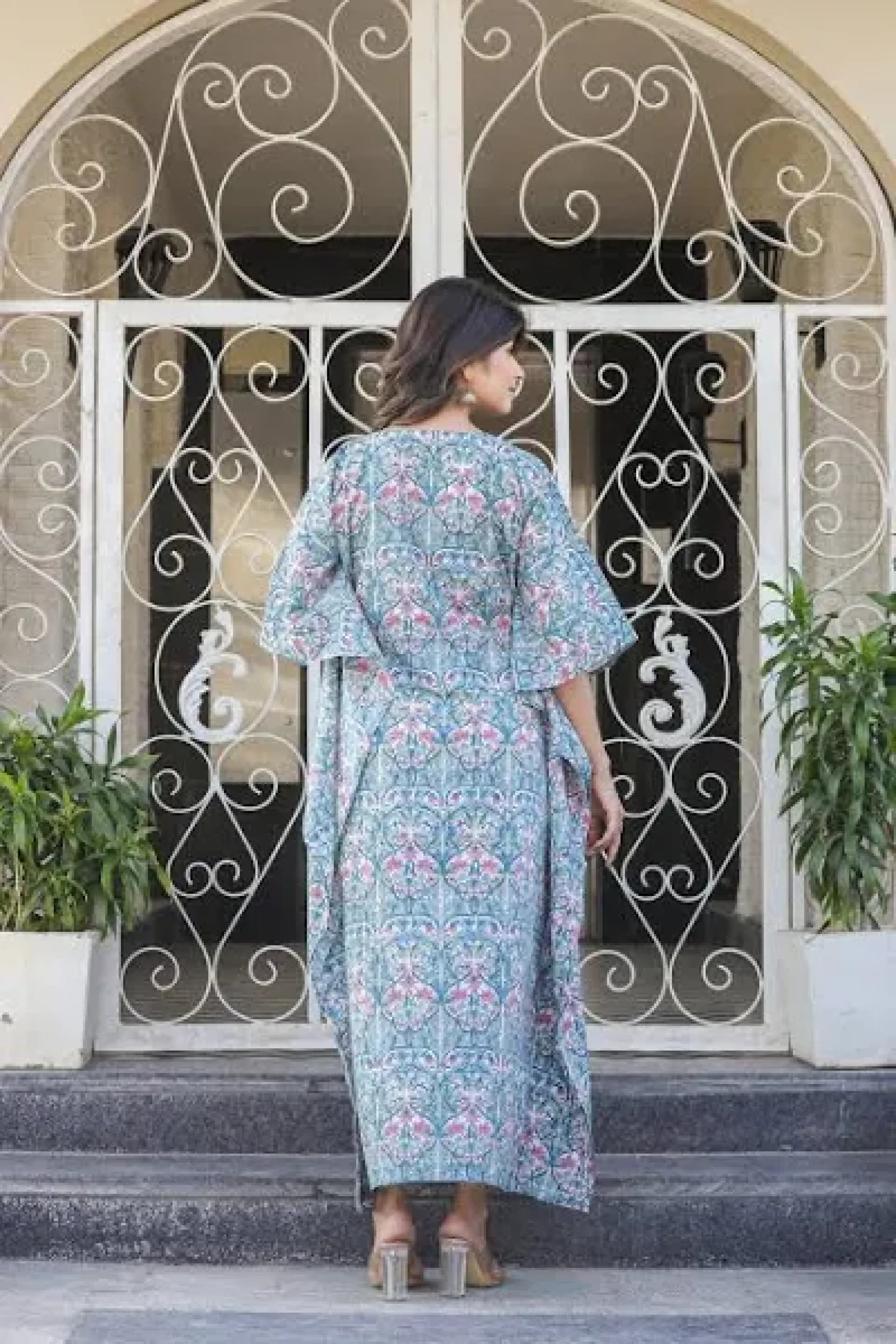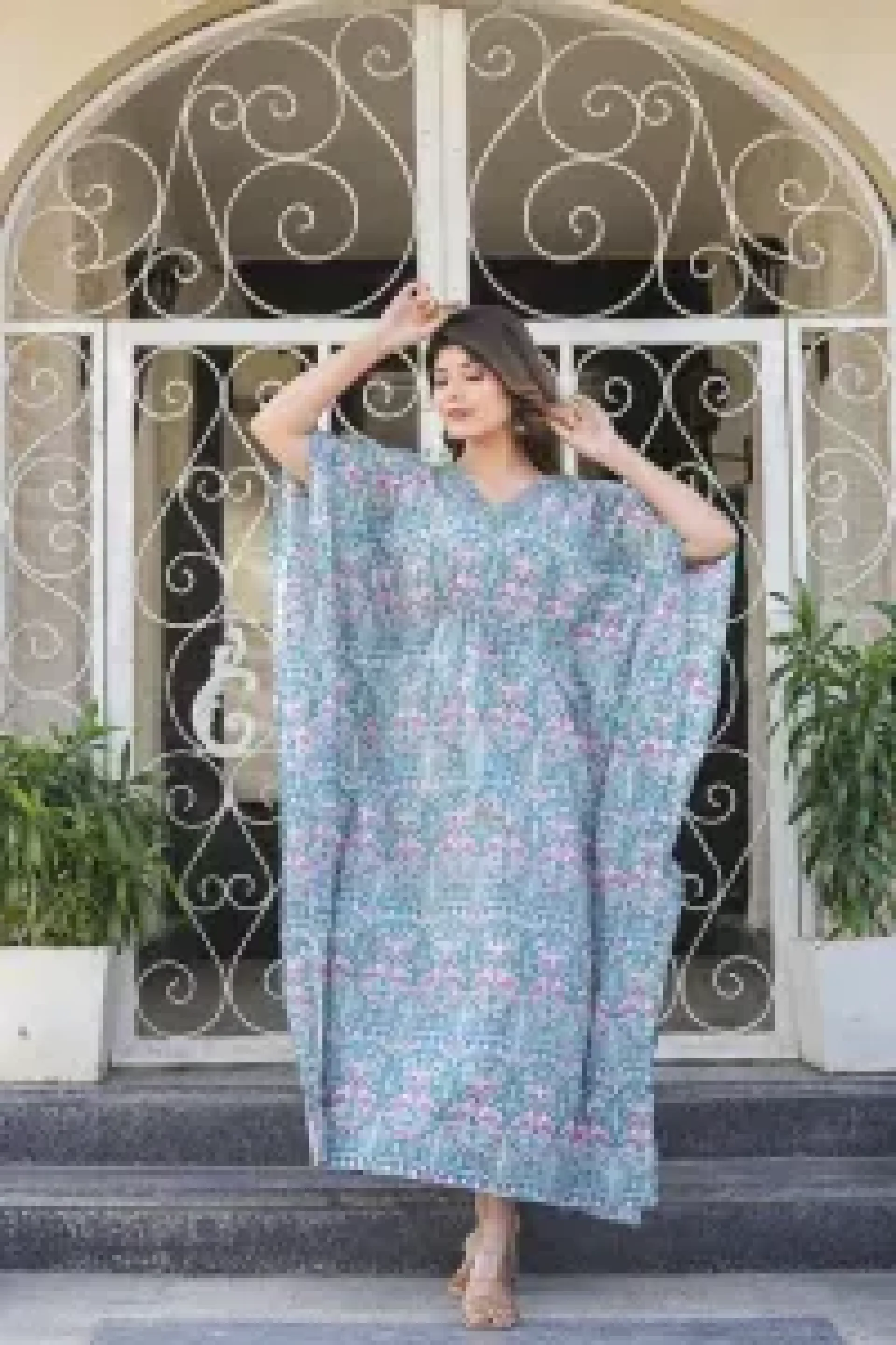 Sky Blue Semi Formal Handblock Kaftan